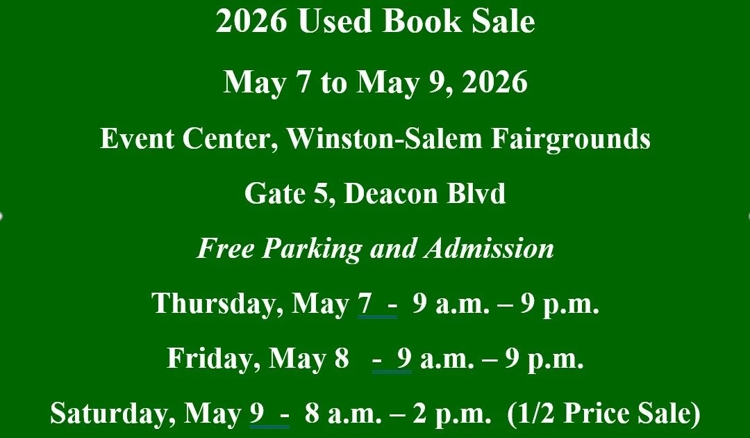 Used books are accepted throughout the week from 9 a.m. to 5 p.m. Monday – Friday. Dedicated volunteers sort and price books throughout the week to prepare for the annual book sale.